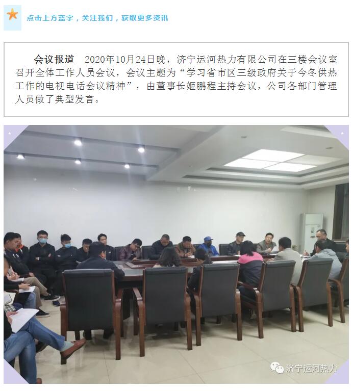 加強(qiáng)管理、提高認(rèn)識,確保順利完成今冬供熱任務(wù)——運(yùn)河熱力認(rèn)真貫徹落實(shí)全省供熱電視電話會議精神紀(jì)實(shí)