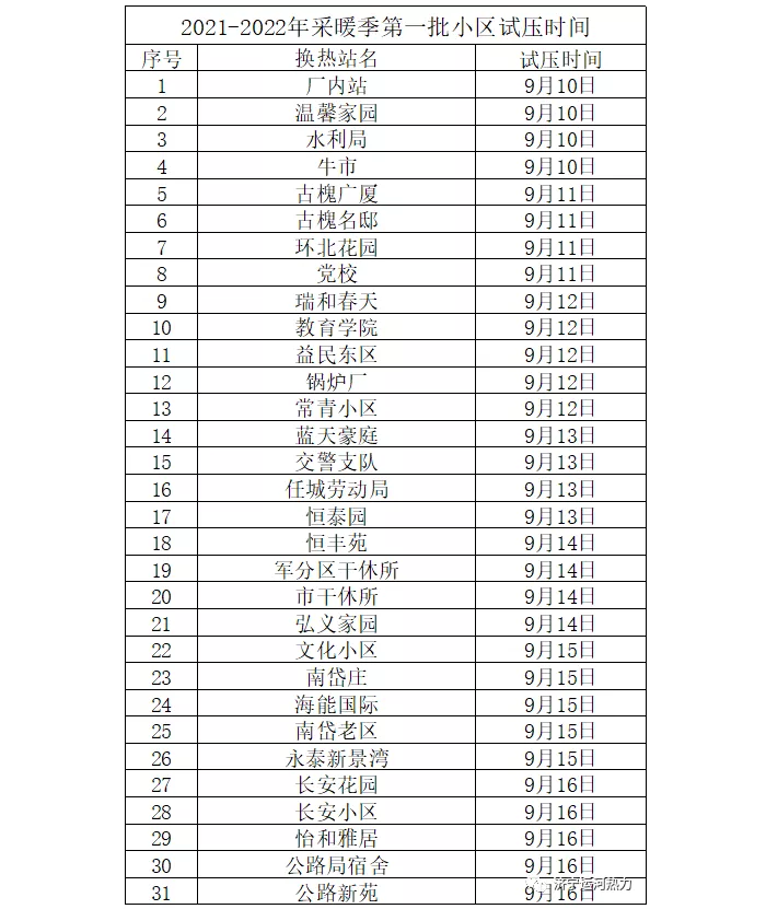 濟寧運河熱力有限公司 2021-2022年采暖季第 一批小區(qū)試壓通知